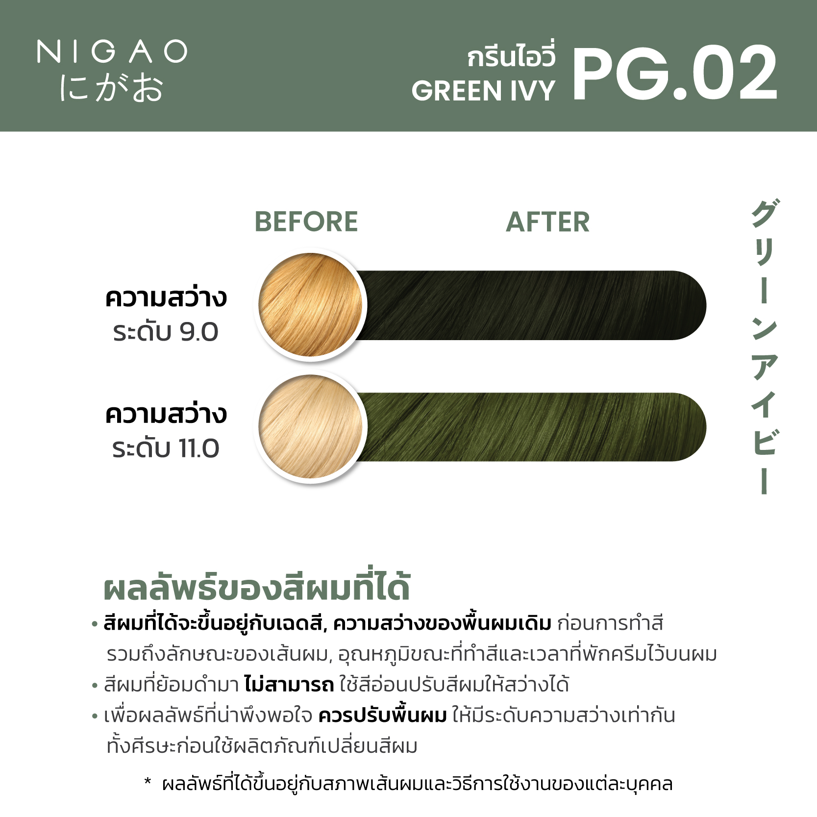 *โปรดอ่านคำแนะนำก่อนใช้ผลิตภัณฑ์ ต้องทดสอบการแพ้อย่างเคร่งครัด 48 ชม.ก่อนใช้ผลิตภัณฑ์นี้ ดูวิธีทดสอบในกล่อง แม้ว่าคุณจะเคยเปลี่ยนสีผมแล้วก็ตาม และผลลัพธ์ที่ได้ขึ้นอยู่กับสภาพเส้นผมของแต่ละบุคคล