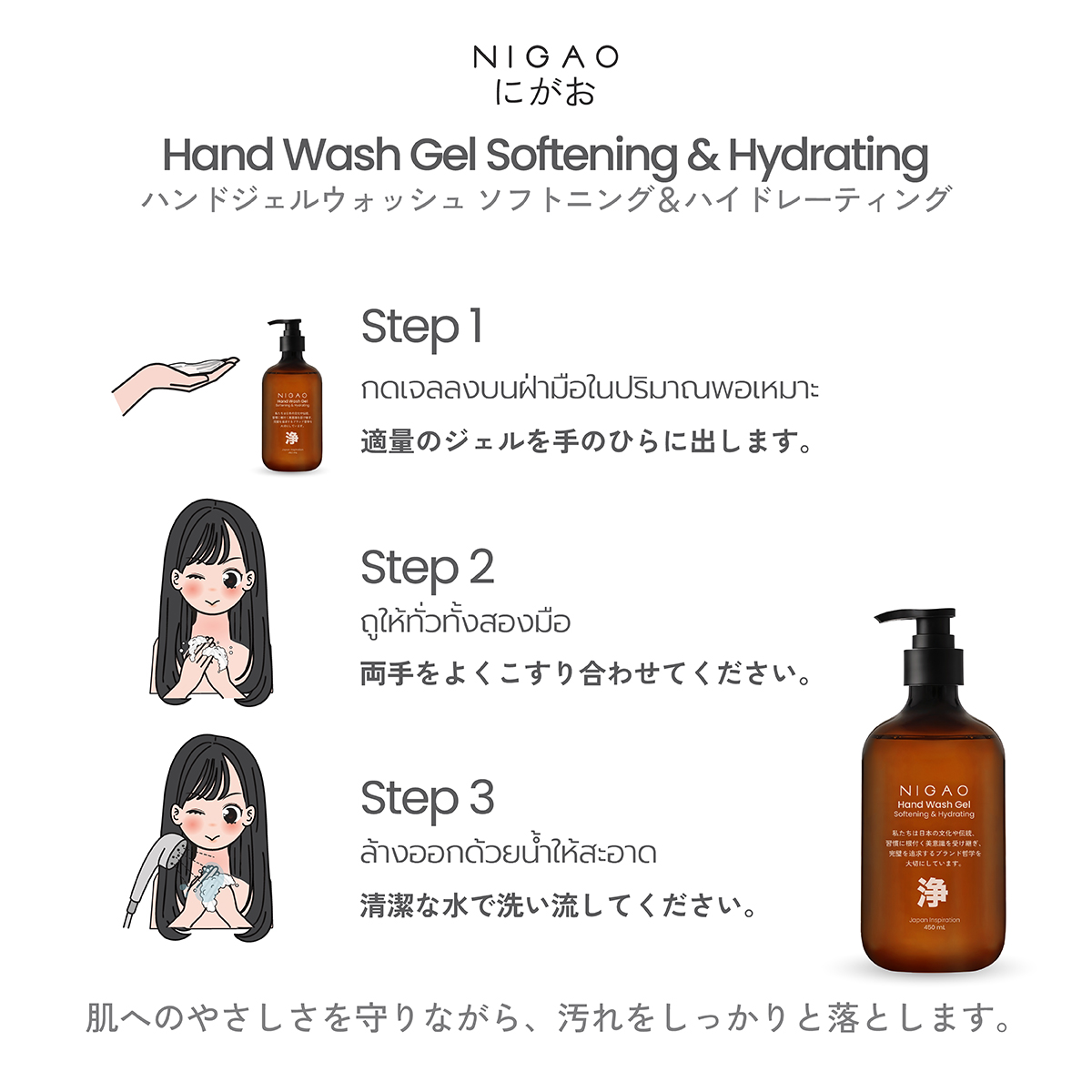 NIGAO Hand Wash Gel | นิกาโอะ แฮนด์ วอช เจล 450 mL